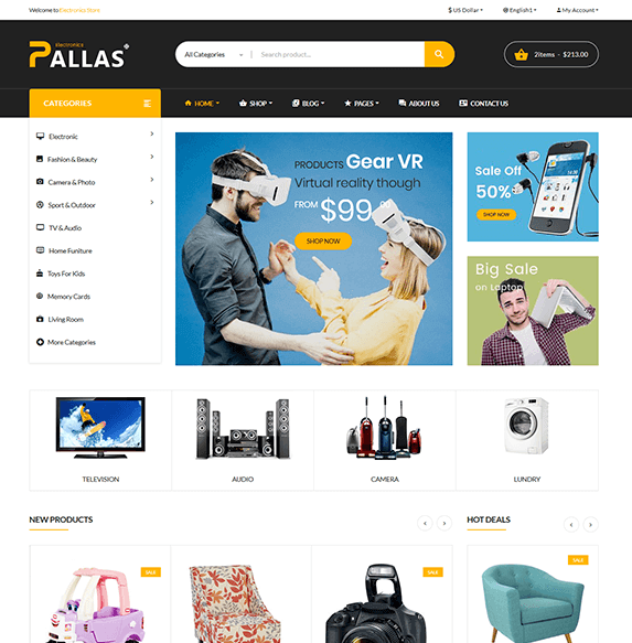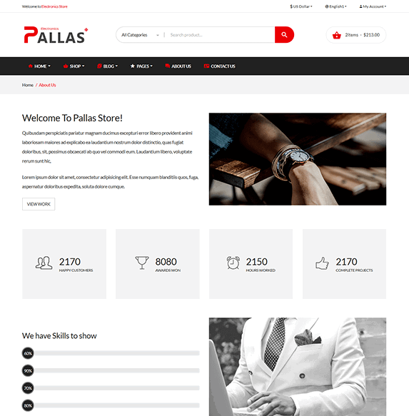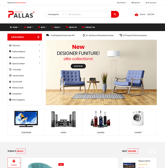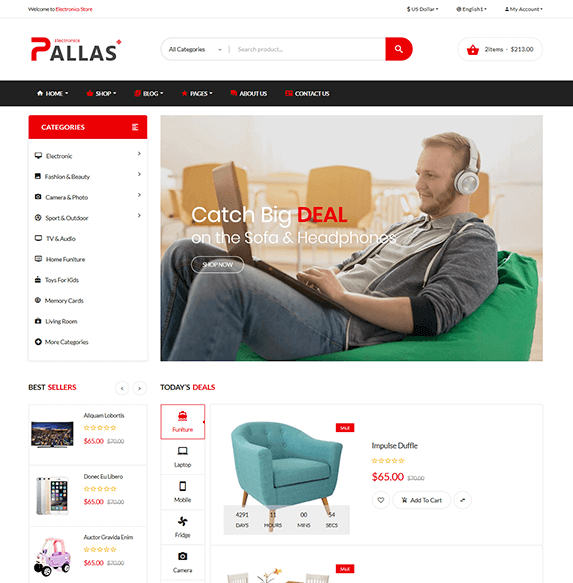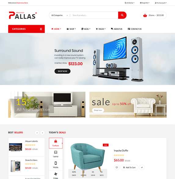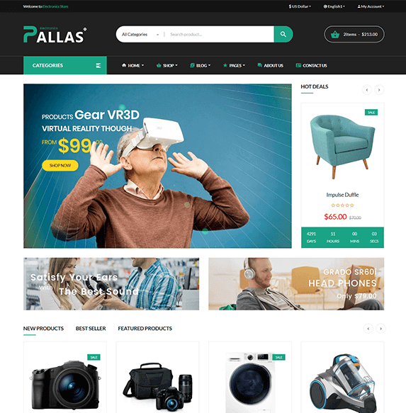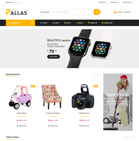 Comes with 08 homepages available with multi style that better for your choice. pallas store is one of the best Bootstrap HTML Template for your store.