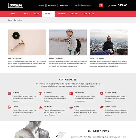 Comes with 04 homepages available with multi style that better for your choice. boxima store is one of the best Bootstrap HTML Template for your store.