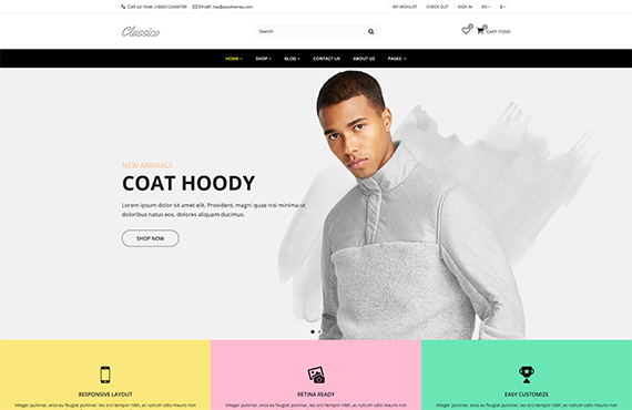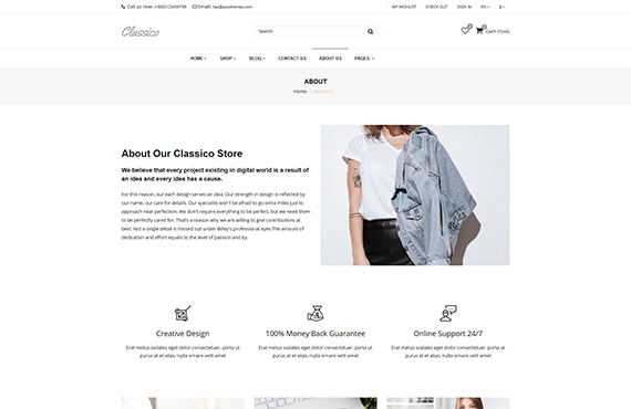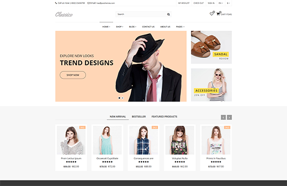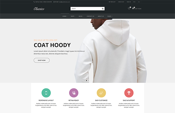 Comes with 06 homepages available with multi style that better for your choice. Classico store is one of the best Fashion eCommerce HTML Template for your store.