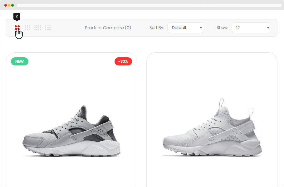 Check nowChoose view mode in category page. e.g. Grid View with 3, 4 or 5 columns and List View ..
