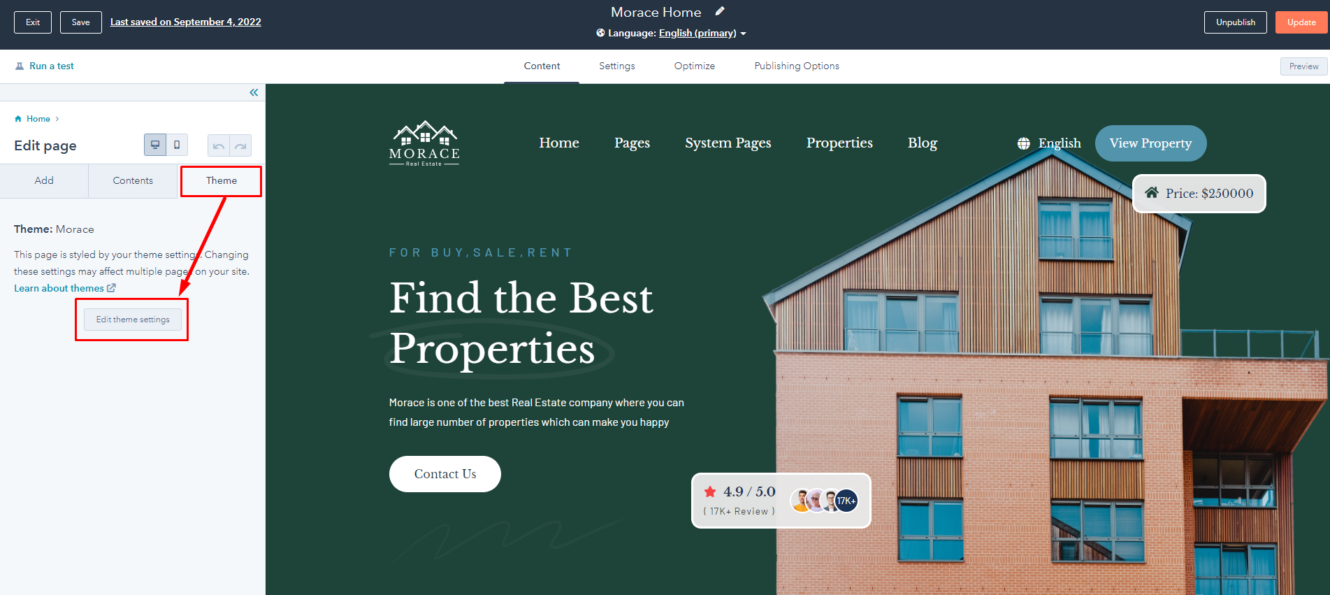 Thank you very much for choosing our theme. We truly appreciate and really hope that you'll find our theme advantageous!Morace - Real Estate HubSpot Theme has been created specifically with the real estate industry in mind. It is elegant, contemporary, and classy. It allows you to create a polished online presence and present your real estate company to website visitors. You can customize this theme to look exactly as you want it to by making a few little adjustments.