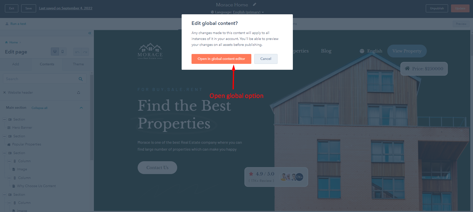 How to Edit global content