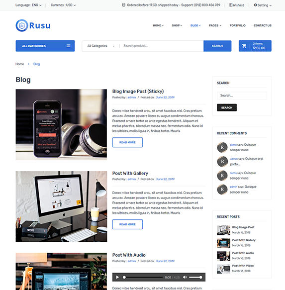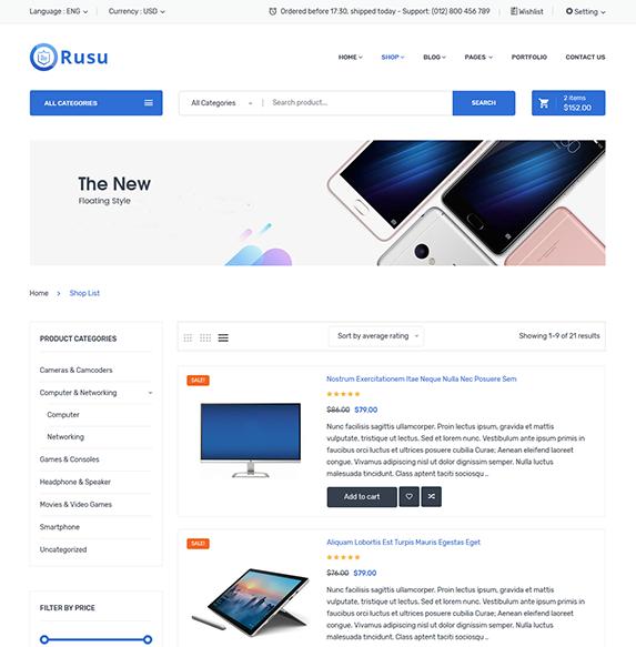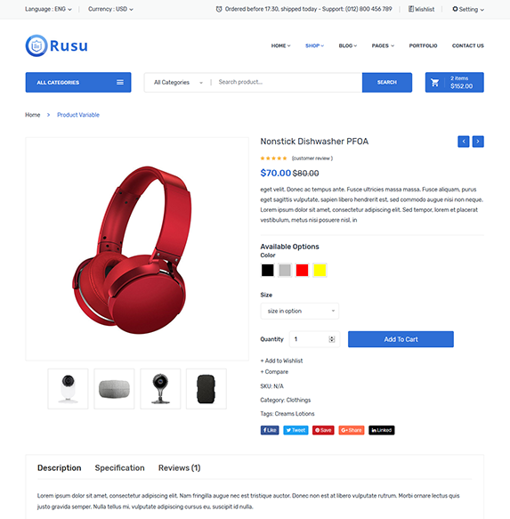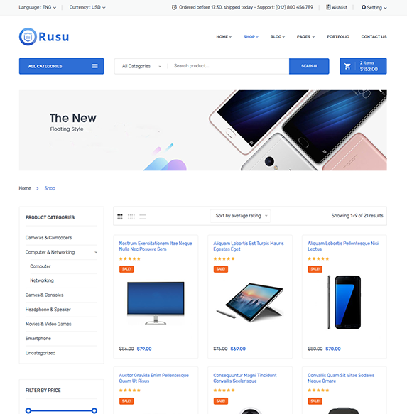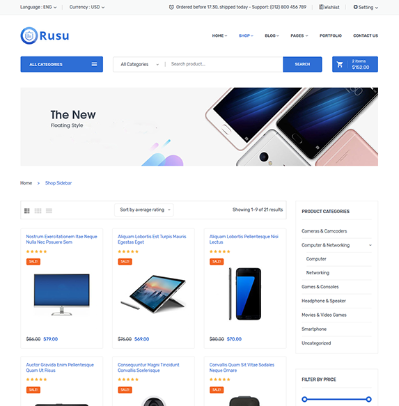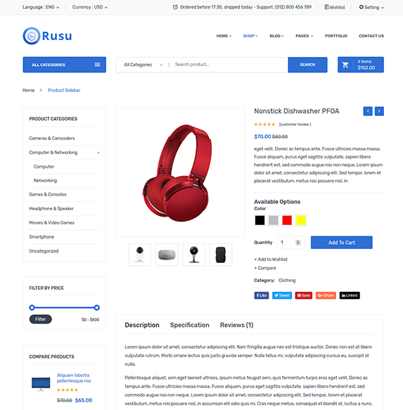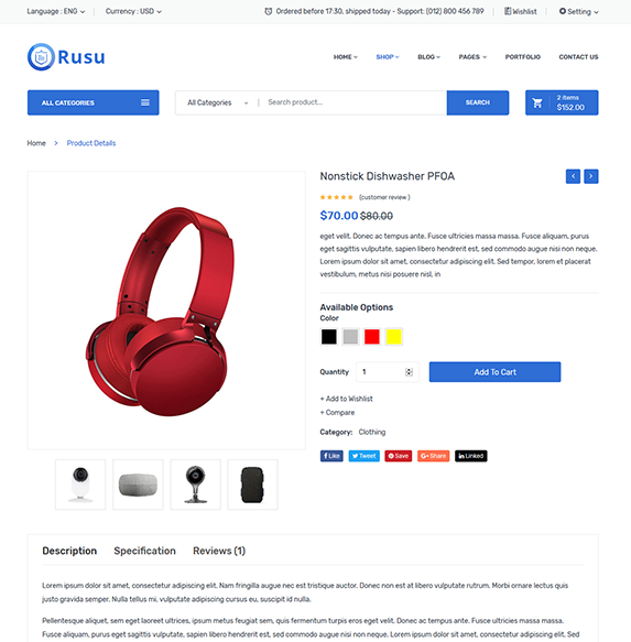 Comes with 05 homepages available with multi style that better for your choice. Rusu store is one of the best Electronics eCommerce HTML Template for your store.